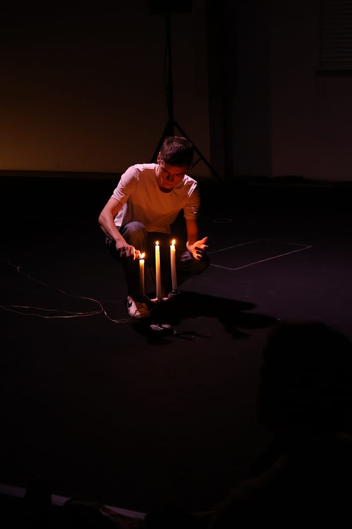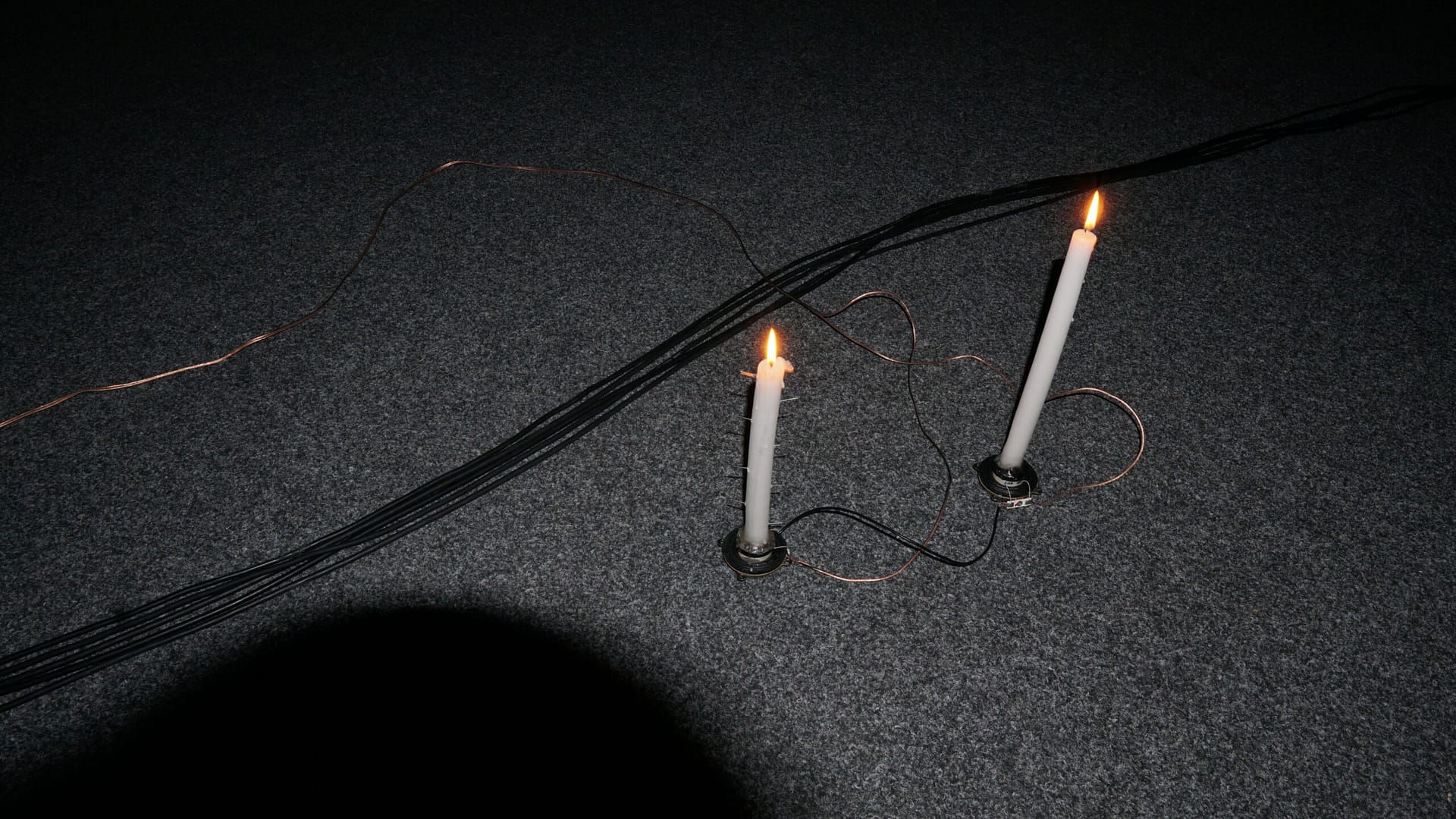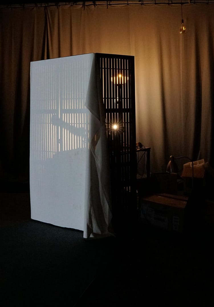 Un performeur active et désactive ces éléments, comme un humain qui voudrait « jouer à Dieu ».