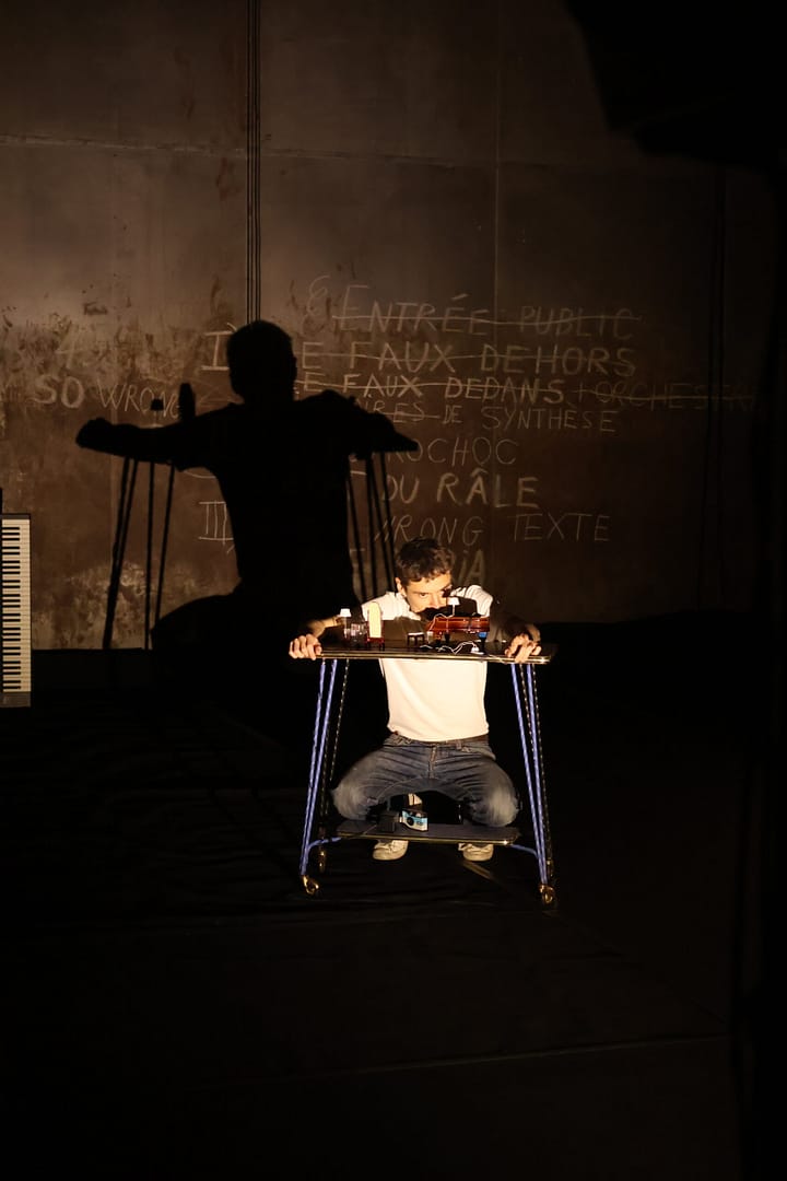 Un performeur active et désactive ces éléments, comme un humain qui voudrait « jouer à Dieu ».